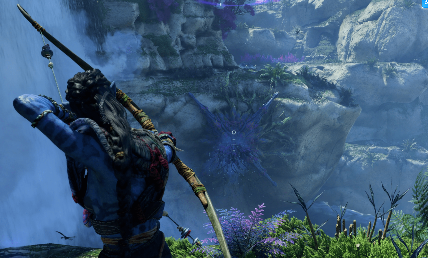 原版游戏坚持采用第一人称视角,旨在强化玩家“成为纳威人”的代入感。然而,此种设计虽在细节互动(如植物触碰反馈)上表现出色,却因视角局限削弱了潘多拉宏观环境的视觉冲击力,更导致部分玩家因3D晕动症被迫弃游。第三人称视角的技术实现堪称系统工程。开发团队并未简单调整摄像机位置,而是彻底重制了动画、操控、音效与镜头逻辑。例如,纳威角色奔跑时的肌肉动态、伊卡兰飞行时的翼膜摆动均需重新设计;环境音效则根据镜头距离调整空间混响,确保远景与近景的听觉层次感。此种精细调整使第三人称模式并非单纯“观察外部”,而是创造了一种更具电影感的动态叙事——玩家可同时感知角色表情与环境互动,如同操控一部实时演算的《阿凡达》电影。视角切换的战略价值更体现在战斗与探索维度。第一人称擅长表现弓箭瞄准的紧张感,而第三人称则便于观察战场全局,实现侧翼包抄或规避围攻。飞行环节中,第三人称镜头完整展现伊卡兰的优雅姿态,使悬浮山群与发光森林的壮丽景观成为连续画卷,而非碎片化视野。