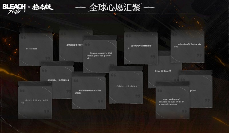 《境·界 刀鸣》官网“心愿汇聚”活动全球同步开启,各位小伙伴可写下对《境·界 刀鸣》的寄语,投入虚拟漂流瓶。在活动中不仅能阅览来自世界各地小伙伴的真诚留言,你的心愿也将跨越区服,随波远航,被更多人看见。无论是许愿十连三中,还是期待与刀鸣世界邂逅,或者是对游戏的建议,这里有来自全球各地死神代理人的花式留言!现在就来加入,与全球死神代理人交流心得,共享尸魂界最新情报!